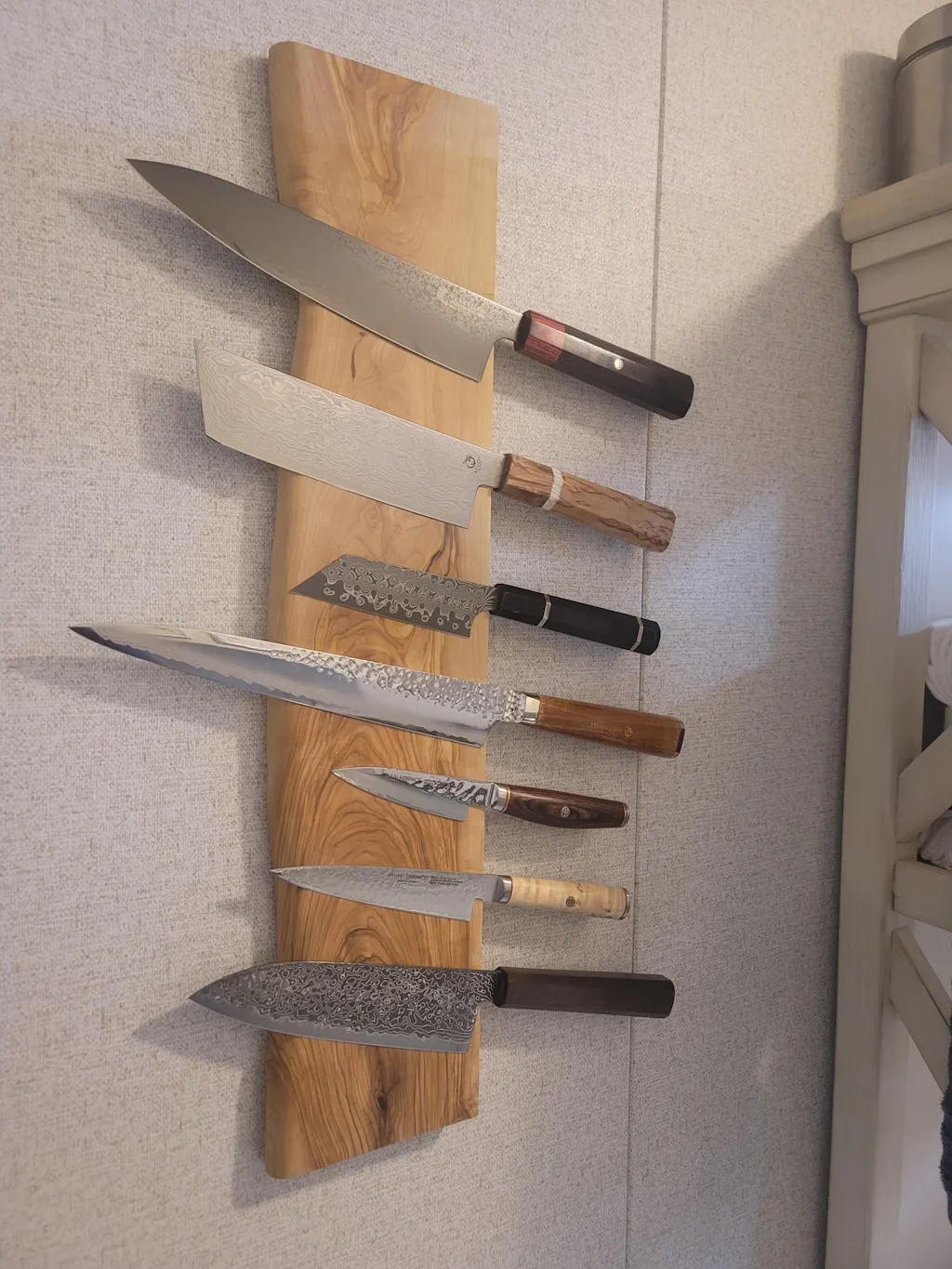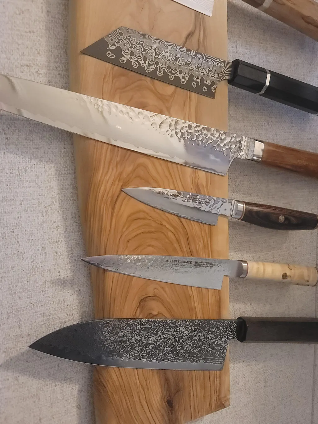 Maybe I shouldn't say this but looks like Hatsukokoro Ryuhyo. Beautiful blade with texture and I'm a sucker for a good Japanese handle. Precise yet durable and punches higher than it's price point. Filled a hole in my block very nicely. Thanks Burrfection.