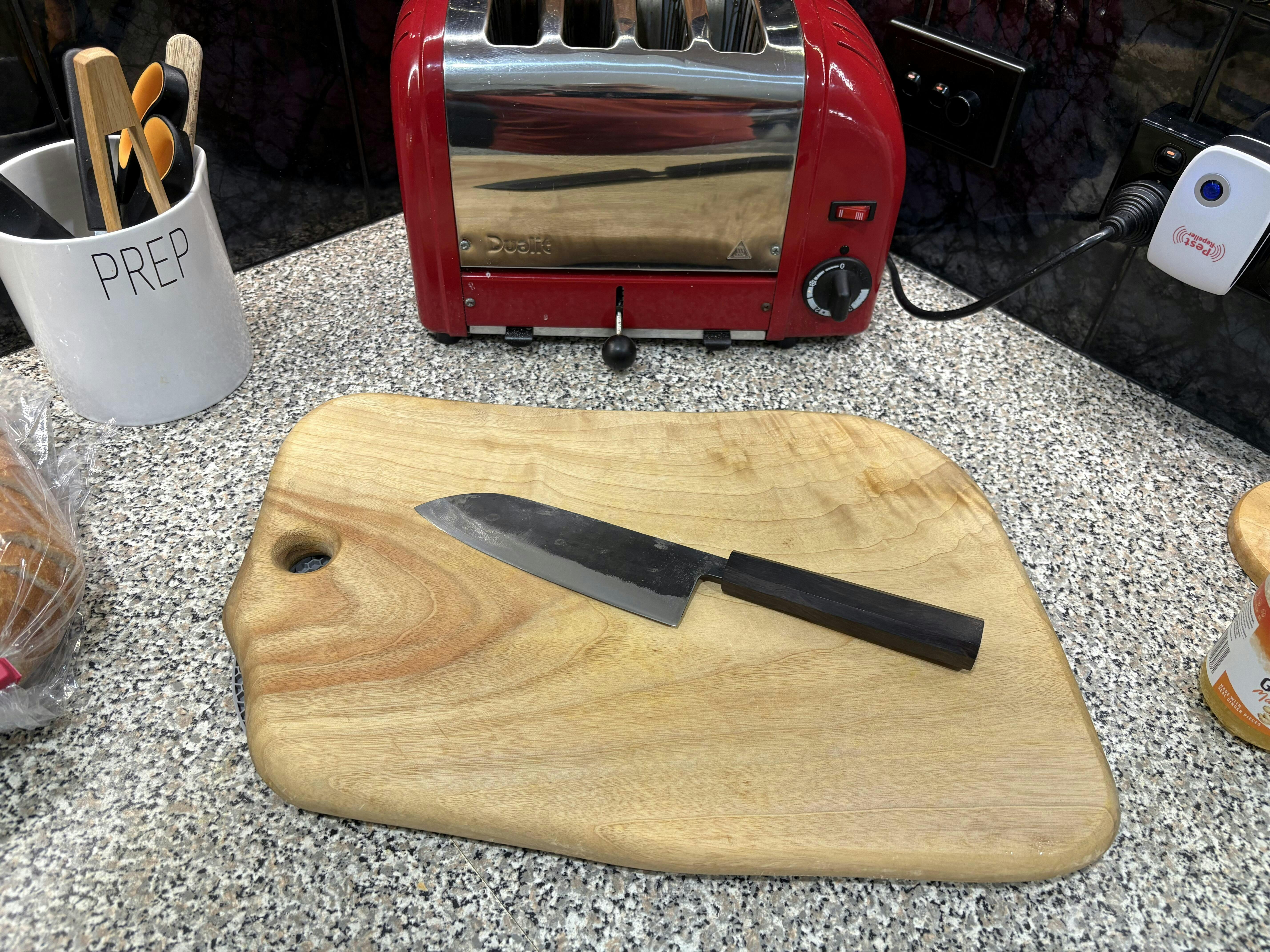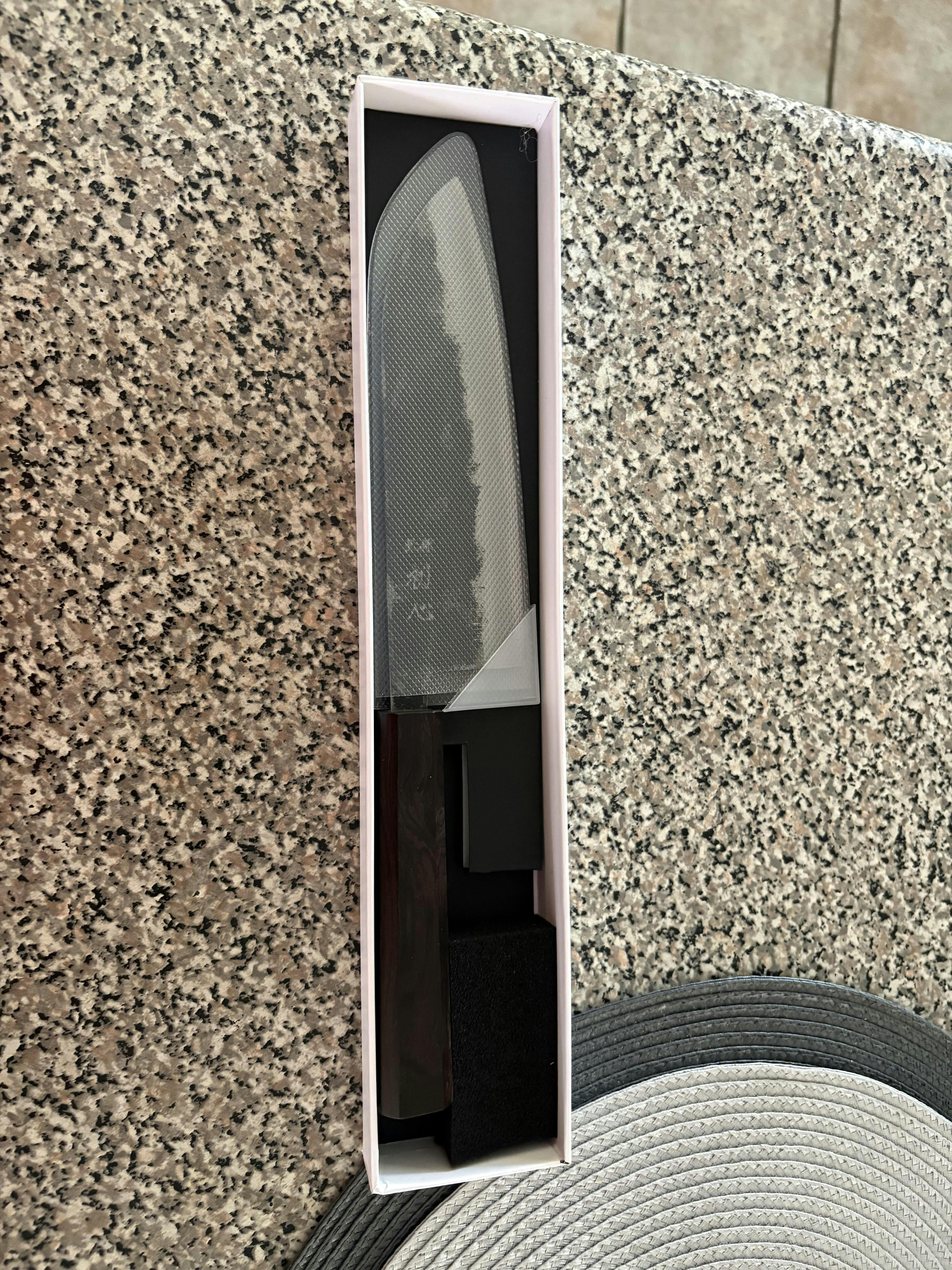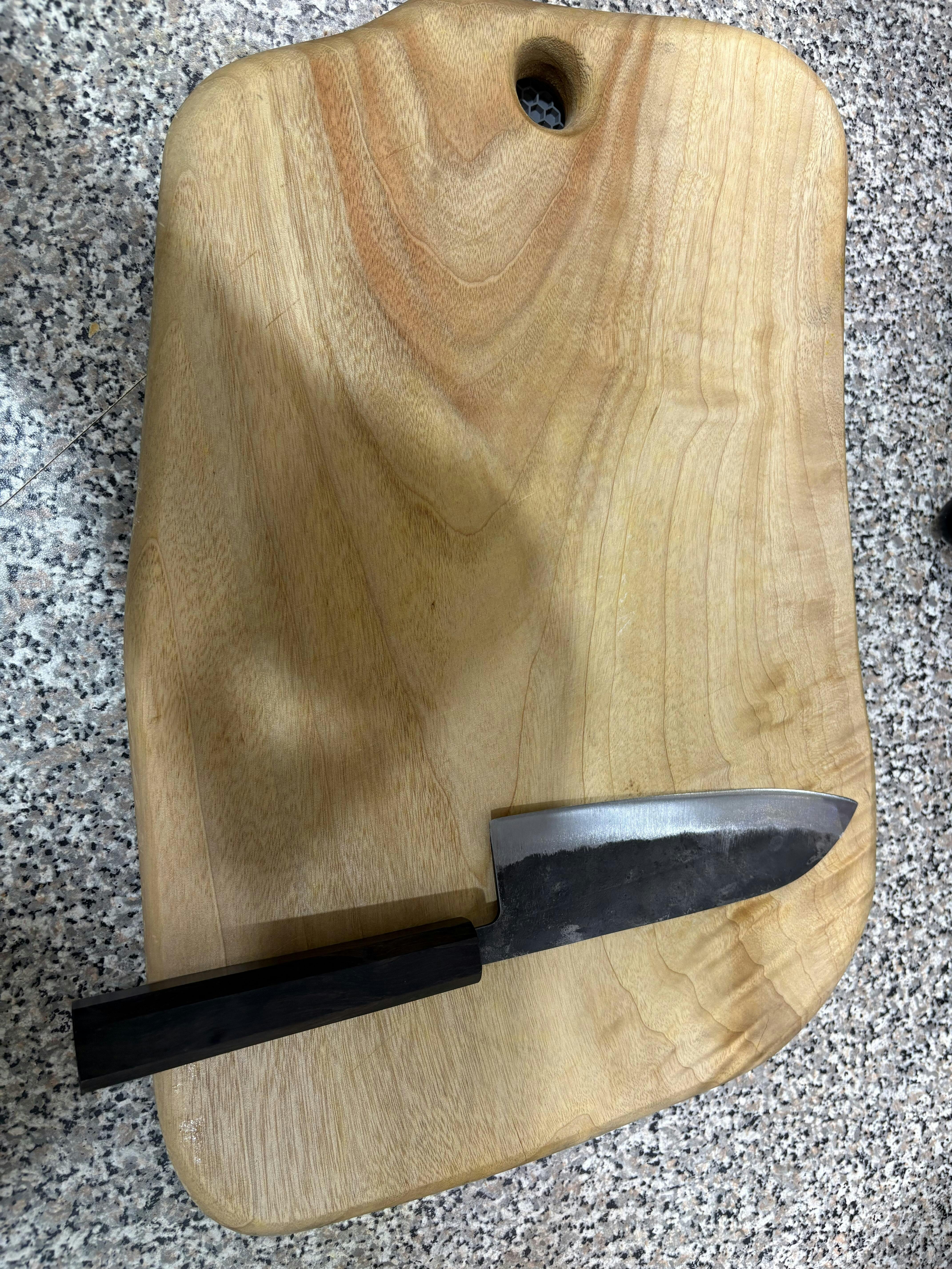 Recommended cutting surface: wood, rubberized boards and high-end composites, and quality plastics such as polyethene make acceptable cutting surfaces, and will help protect and prolong knife’s edge. AVOID glass, metal, countertops, and other rigid, non-forgiving surfaces.