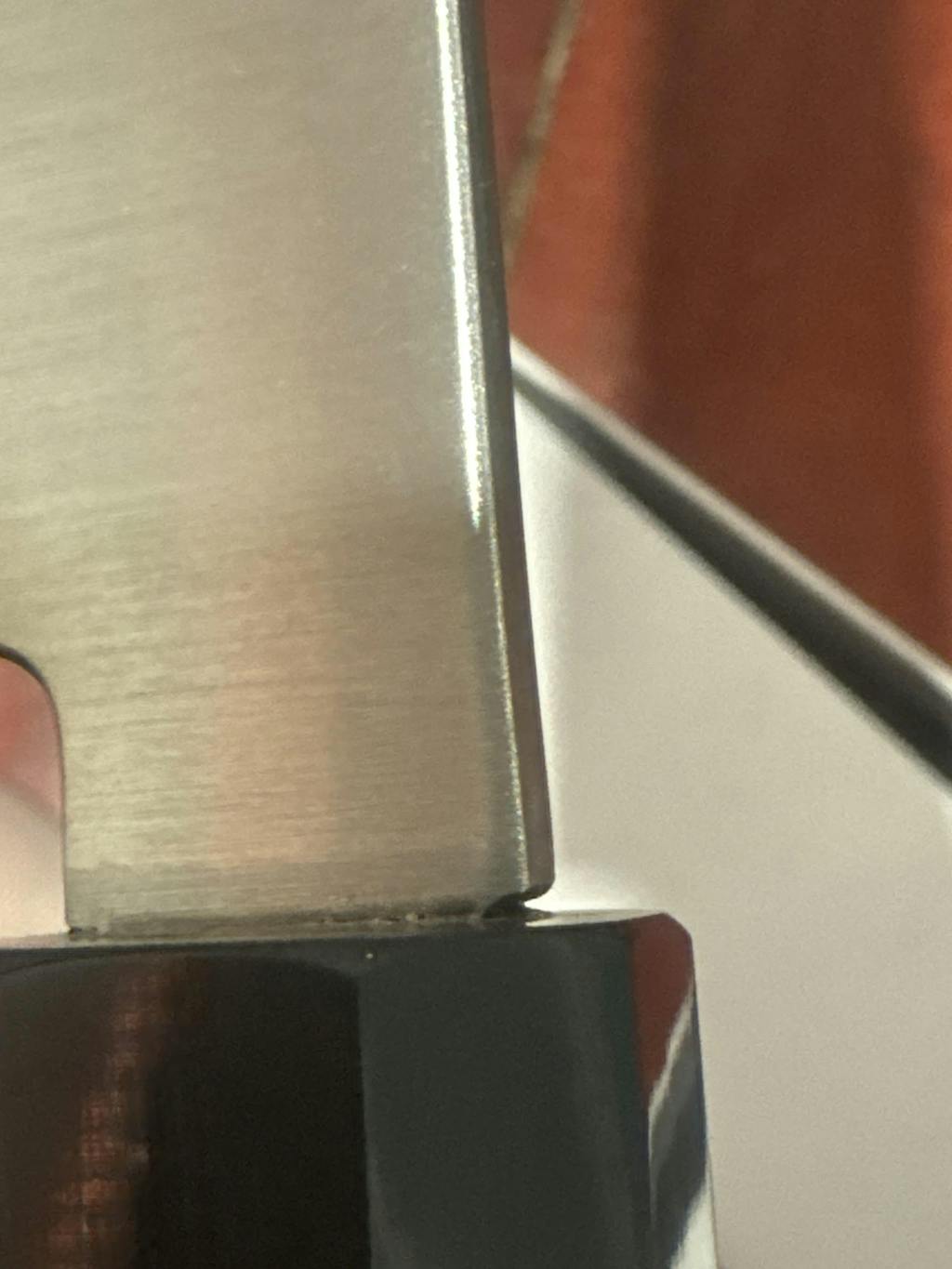 Recommended cutting surface: wood, rubberized boards and high-end composites, and quality plastics such as polyethene make acceptable cutting surfaces, and will help protect and prolong knife’s edge. AVOID glass, metal, countertops, and other rigid, non-forgiving surfaces.